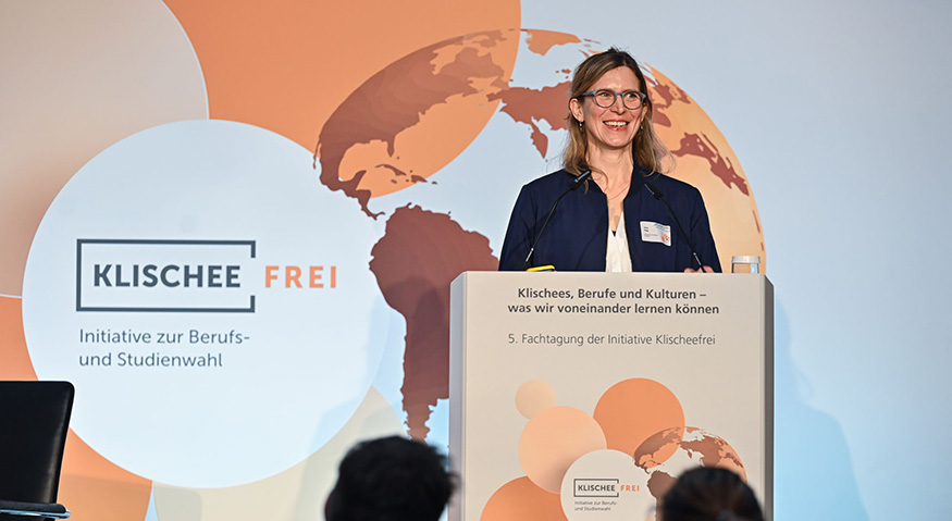 In ihrem Eingangsstatement stellte Annalena Baerbock klar, dass Geschlechtergerechtigkeit nicht nur gerecht, sondern auch gut für die Wirtschaft sei – auch vor dem Hintergrund des globalen Wettbewerbs um Fachkräfte. Die Ministerin machte deutlich, dass Deutschland in Sachen Gleichberechtigung und Klischeefreiheit mitnichten Vorreiter sei, sondern: „Das, was wir hier diskutieren, ist mindestens der Standard, wenn nicht gar in vielen Ländern überholt.“ Gerade im Hinblick auf die fortschreitende Digitalisierung falle auf, dass in IT-Berufen Frauen fehlten und die weibliche Perspektive unterrepräsentiert sei.