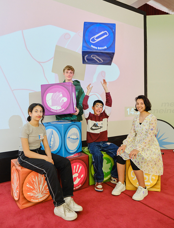 Der Parcours in der Halle macht neugierig: Stylische Hocker, ein Labyrinth, ein Tunnel aus Wellblech, eine Bühne. Bildschirme sind zu sehen, auch große bunte Würfel. Auf dem Boden Teppiche und Sitzkissen. Was gibt es hier zu tun und zu entdecken? Statt wie sonst Unterricht, erleben die Schülerinnen und Schüler aus den Jahrgangsstufen 7 und 8, die in der Halle eintreffen, einen Erlebnisparcours mit sechs handlungsorientierten Stationen. Es geht darum, eigene Stärken zu entdecken und sie mit „realisierbaren beruflichen Perspektiven zu verbinden“, wie es bei SINUS heißt.