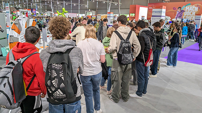 Zahlreiche Jugendliche, Eltern und Lehrkräfte am Stand | Prominente Gäste und eine Überraschung