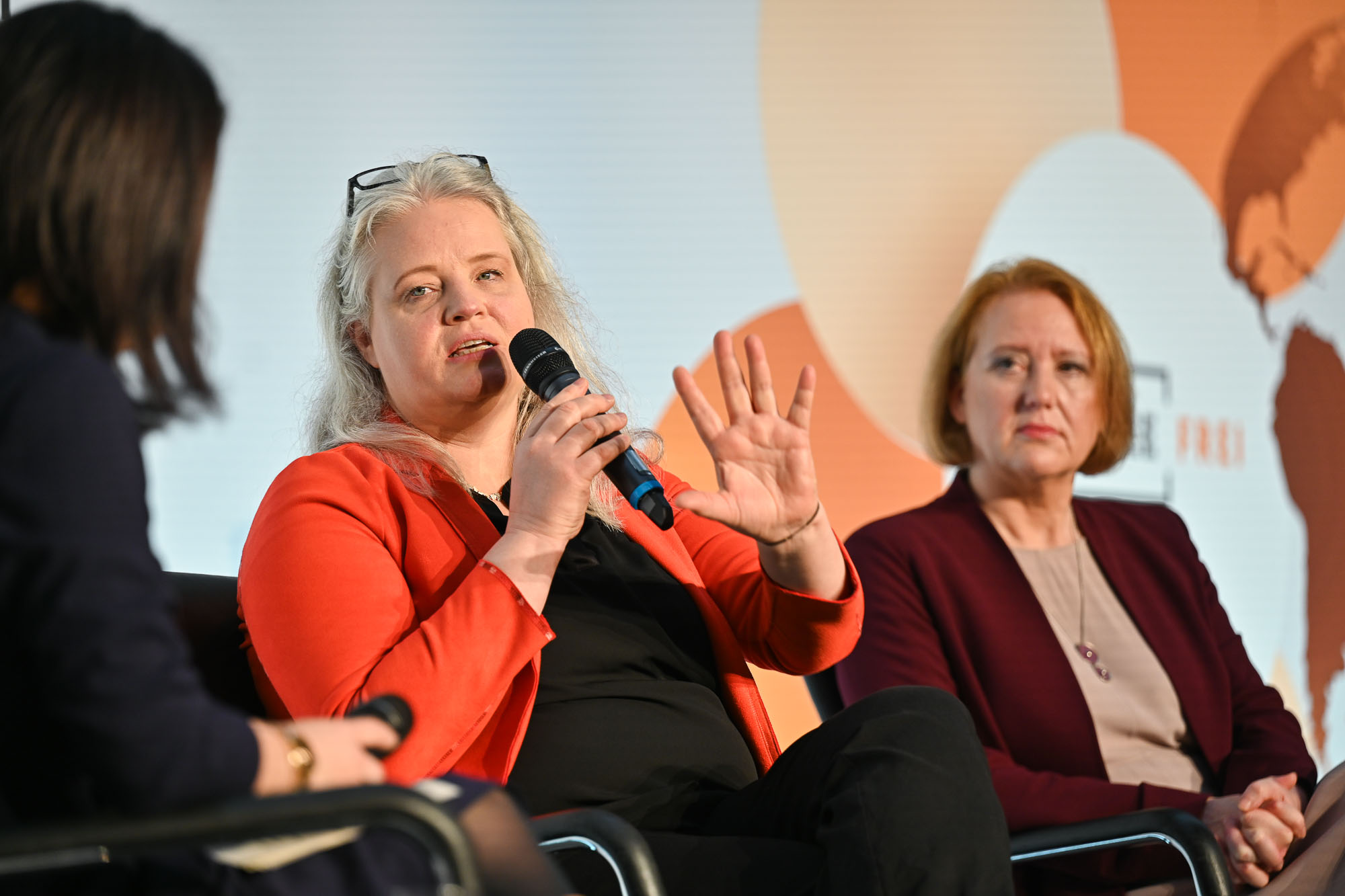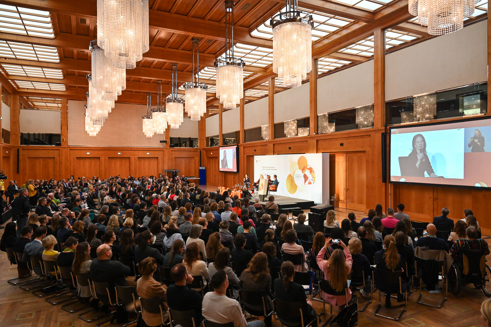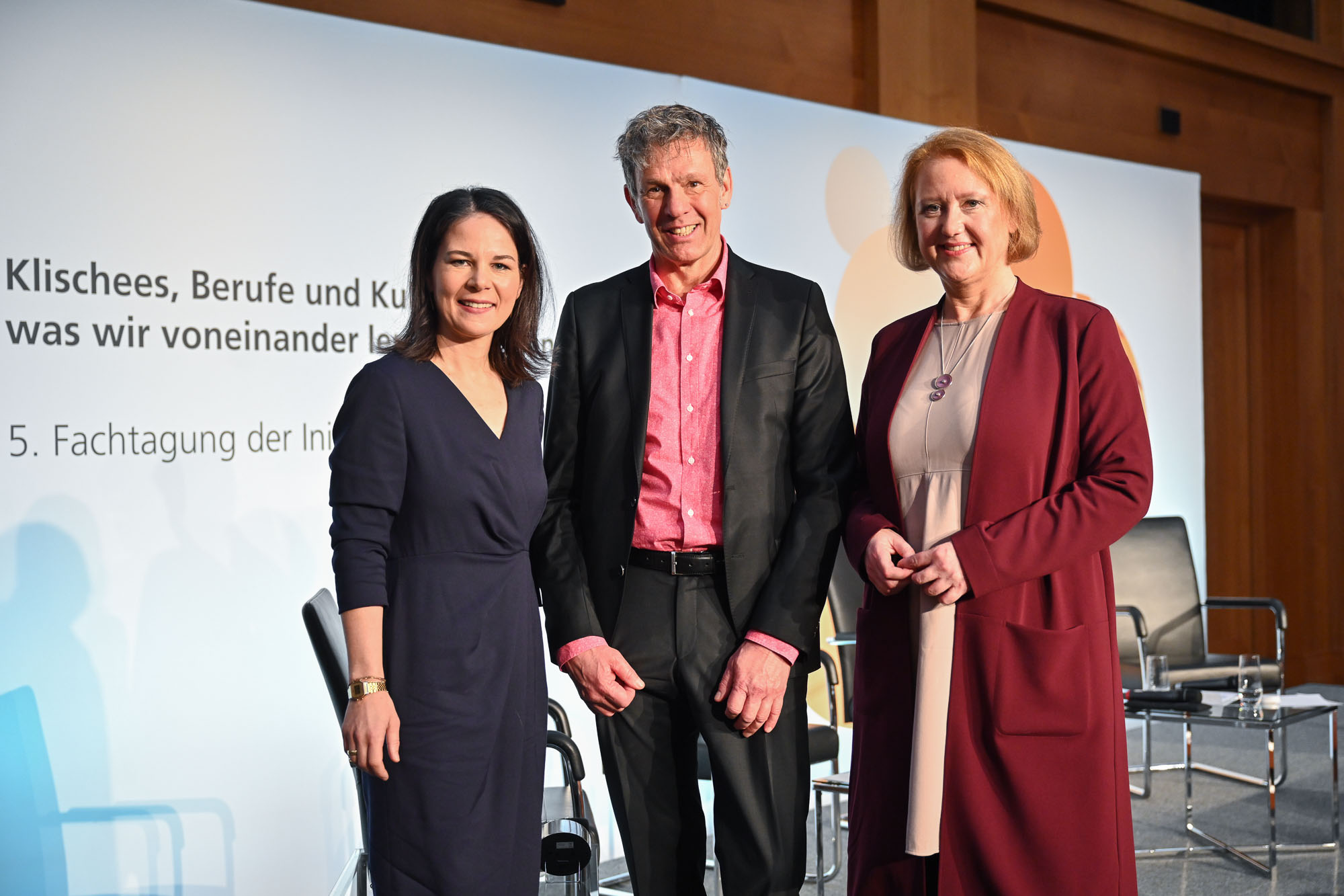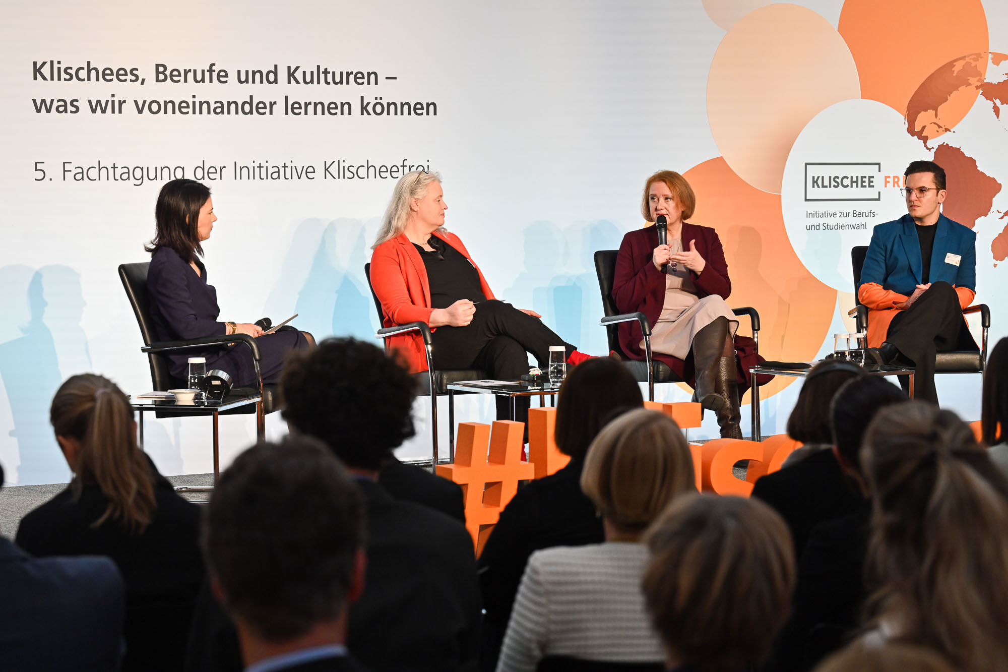 Berlin, 1. März 2024. Die 5. Fachtagung der Initiative Klischeefrei wurde heute um 10 Uhr in Berlin mit über 400 Teilnehmenden aus Bildung, Wirtschaft und Forschung sowie Gästen ausländischer Botschaften eröffnet. Auf dem Podium diskutierten am Vormittag unter anderem Bundesaußenministerin Annalena Baerbock und Lisa Paus, Bundesgesellschaftsministerin.