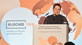 „Wenn wir eine in jeder Hinsicht geschlechtergerechte Gesellschaft haben wollen, dann müssen wir vor allem auch bei Kindern, Jugendlichen und den Eltern ansetzen!“, so Schirmherrin Elke Büdenbender in ihrem Grußwort mit Blick auf die zukünftigen Aufgaben der Initiative Klischeefrei. Es freue sie ganz besonders, dass die Initiative in diesem Jahr Jugendliche und Eltern in den besonderen Fokus rückt. „Hartnäckige Klischees behindern junge Talente in allen gesellschaftlichen Schichten, sich ihren Neigungen und Interessen entsprechend zu verwirklichen.“