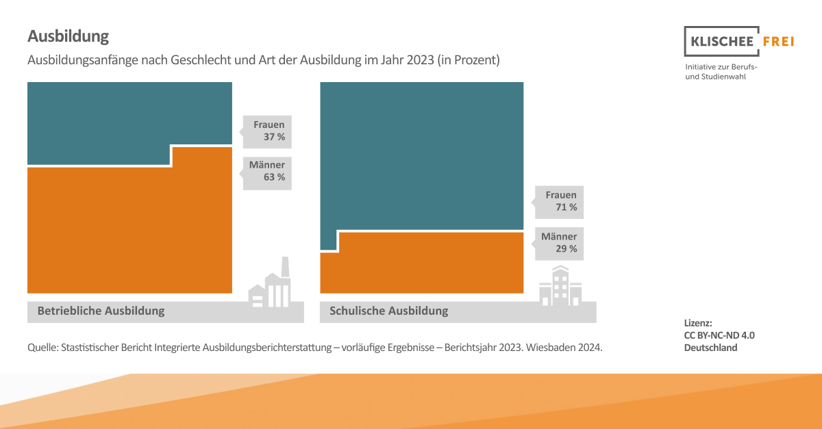 Zitation: Servicestelle der Initiative Klischeefrei: „Betriebliche und schulische Ausbildung", Stand 11/2024, Creative Commons Lizenz (CC BY NC ND 4.0 Deutschland).