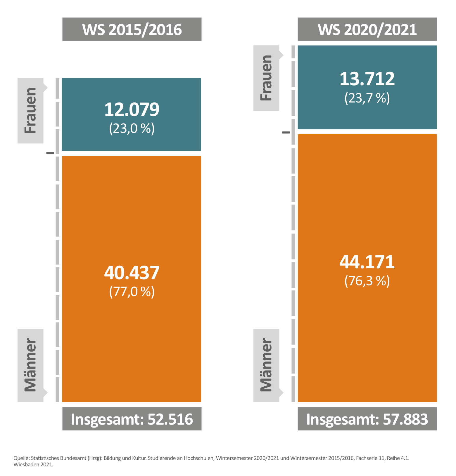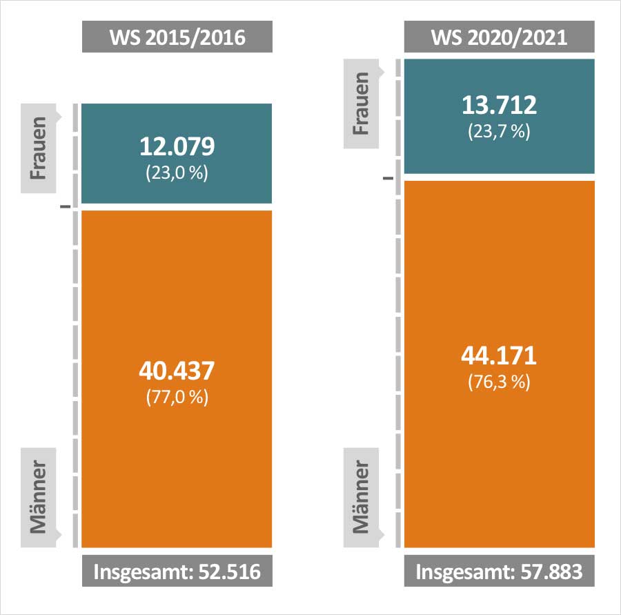 Dieses Ungleichgewicht steht einer gleichberechtigten und klischeefreien Gestaltung des gesamtgesellschaftlichen Wandels entgegen, da insbesondere im IT-Bereich wichtige technologische Weichen für Wirtschaft und Gesellschaft gestellt werden. Darüber hinaus wird für die Entwicklung digitaler Technologien längst nicht das gesamt mögliche gesellschaftliche Innovationpotenzial genutzt.1,2