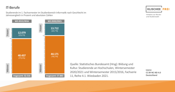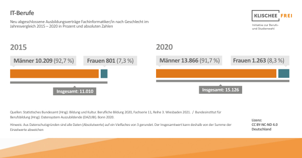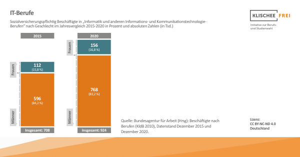 Die Chancen, die digitale Transformation durch Ausübung eines Berufs im IT-Bereich mitzugestalten, sind jedoch nach Geschlechtern ungleich verteilt. Eine Begründung dafür sind fest verankerte Geschlechterklischees, die Einfluss auf die Berufs- und Studienwahl haben und jungen Frauen die Einmündung in IT-Berufe erschweren.