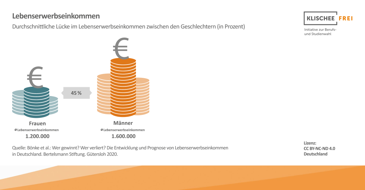 Zitation: Servicestelle der Initiative Klischeefrei: „Lebenserwerbseinkommen", Stand 08/2025, Creative Commons Lizenz (CC BY NC ND 4.0 Deutschland).