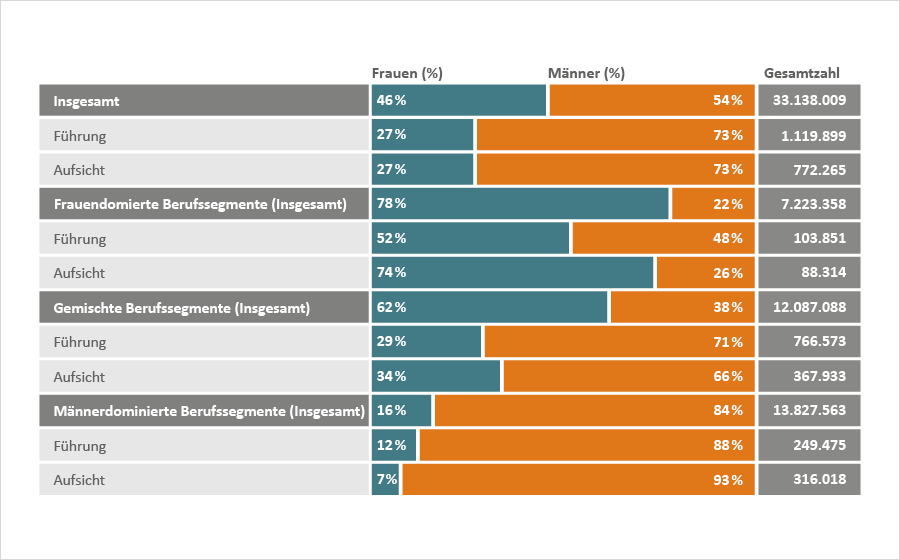 Auch in frauendominierten Berufssegmenten sind Frauen in Leitungspositionen unterrepräsentiert