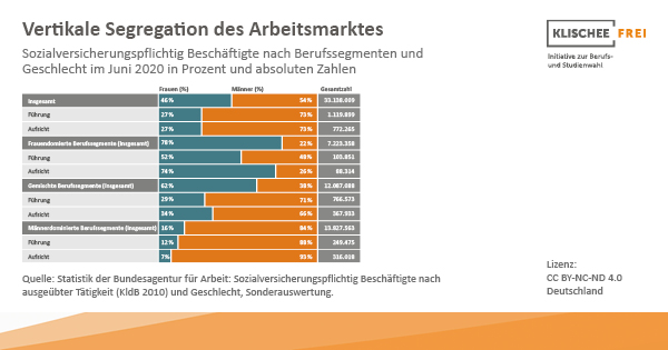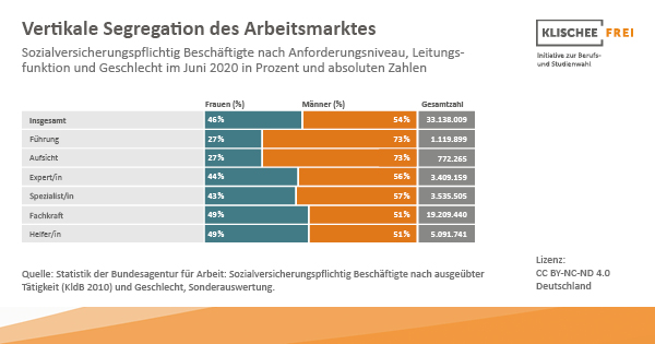 Zitation: Servicestelle der Initiative Klischeefrei: „Vertikale Segregation des Arbeitsmarkts“, Stand 06/2021, Creative Commons Lizenz (CC BY NC ND 4.0 Deutschland).