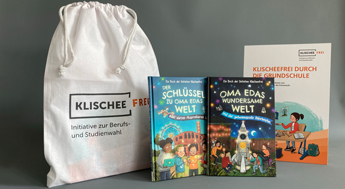 Außerdem gehören die beiden Lesebücher „Der Schlüssel zu Oma Edas Welt oder warum Ausprobieren hilft“ für Leseanfängerinnen und Leseanfänger und „Oma Edas wundersame Welt und der geheimnisvolle Raketenplan“ für fortgeschrittene Leserinnen und Leser dazu. Über die Geschichten soll den Kindern ein spielerischer und klischeefreier Zugang zu Berufen, Tätigkeiten und Geschlechterrollen vermittelt werden. Sie können die Bücher gemeinsam mit der Klasse lesen, die passenden Methoden dazu anwenden und ihre Klassenbibliothek mit ihnen erweitern.