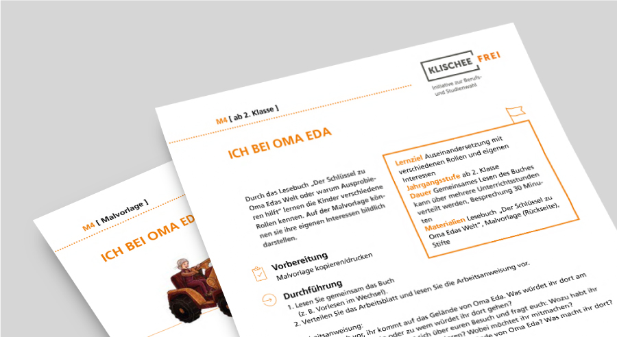 Die Auseinandersetzung mit verschiedenen Rollen und eigenen Interessen stärkt das Selbstwertgefühl von Kindern. Durch das Lesebuch „Der Schlüssel zu Oma Edas Welt oder warum Ausprobieren hilft“ lernen Kinder ab der 2. Klasse verschiedene Rollen kennen und eigene Interessen zu artikulieren.