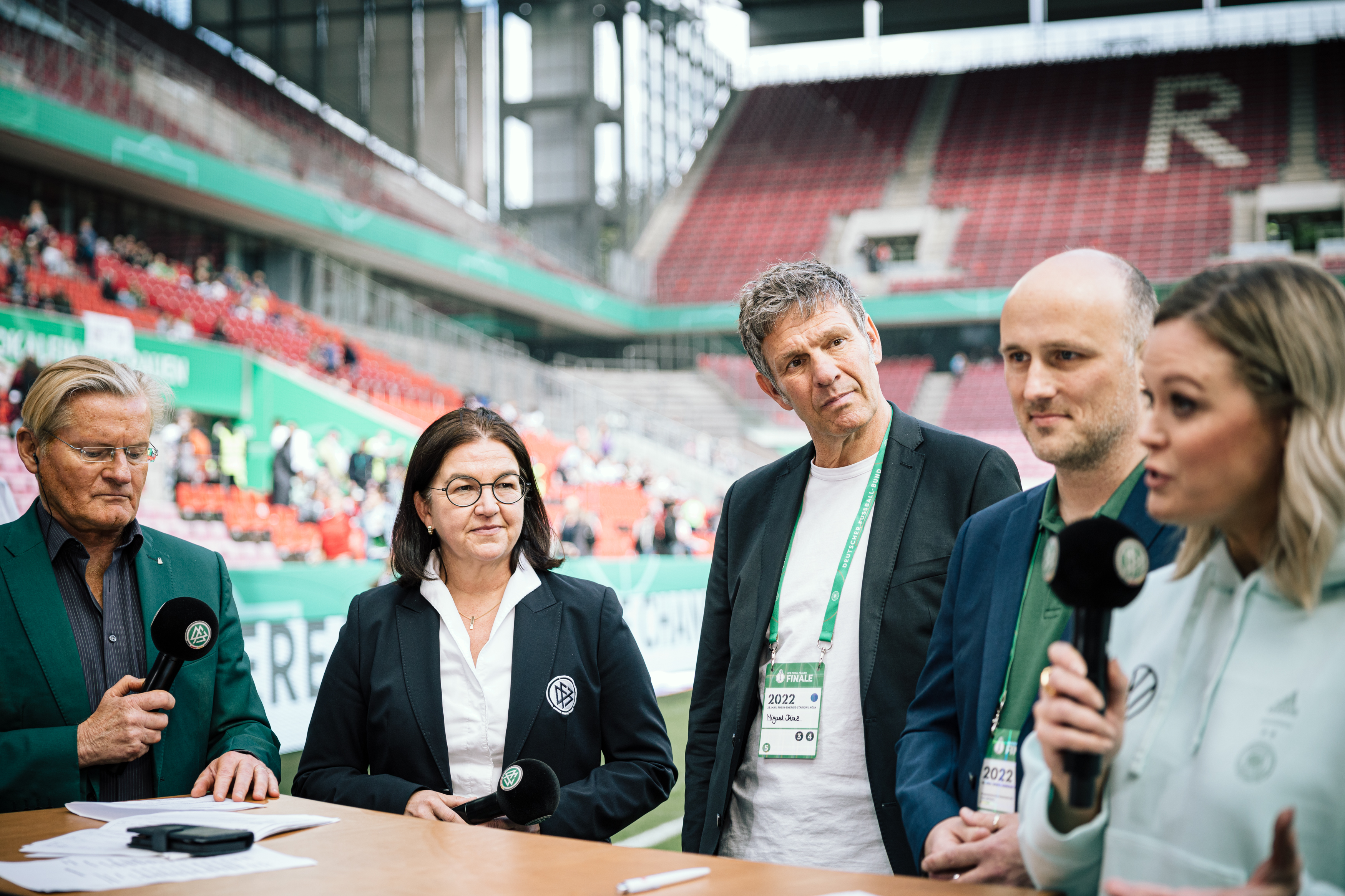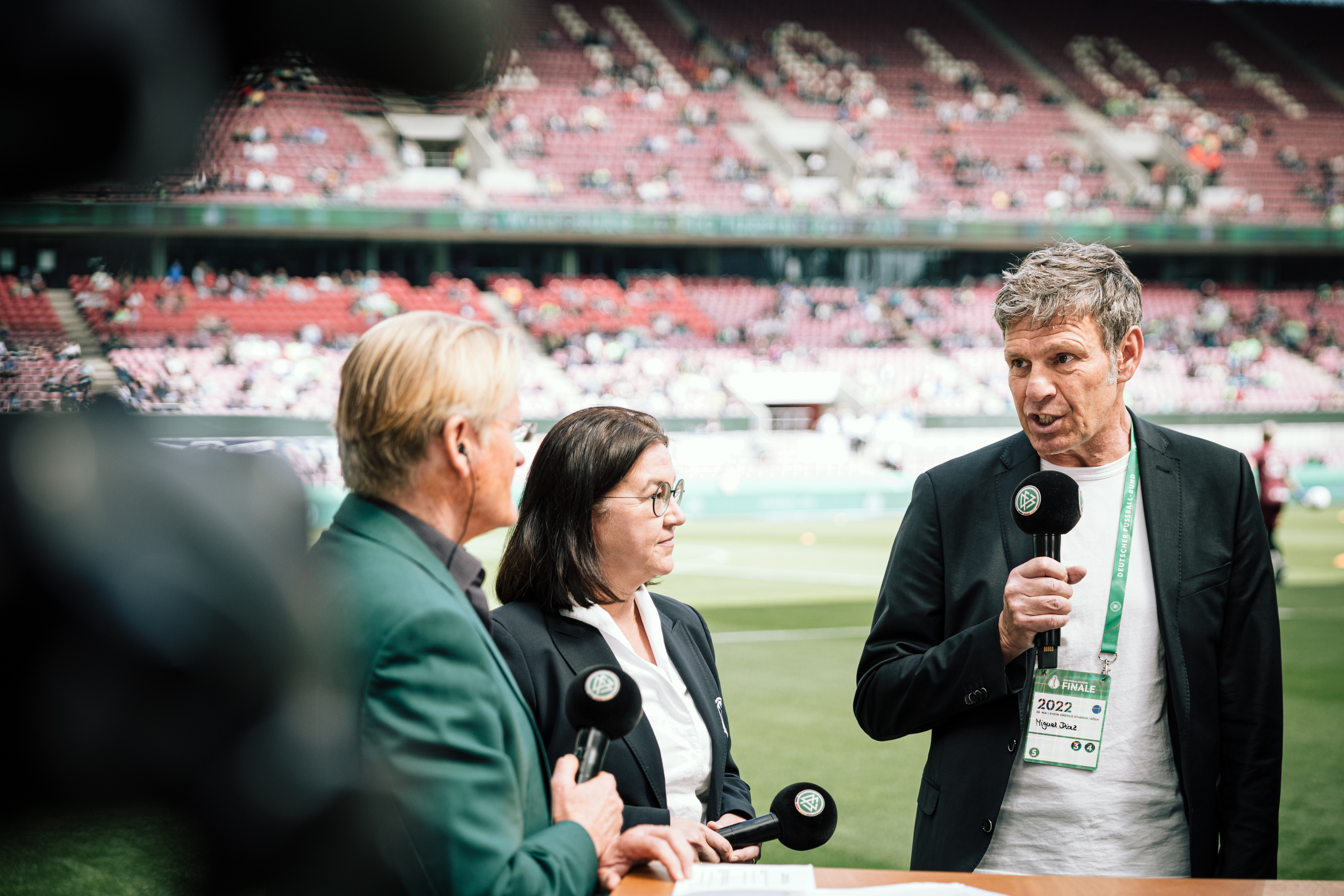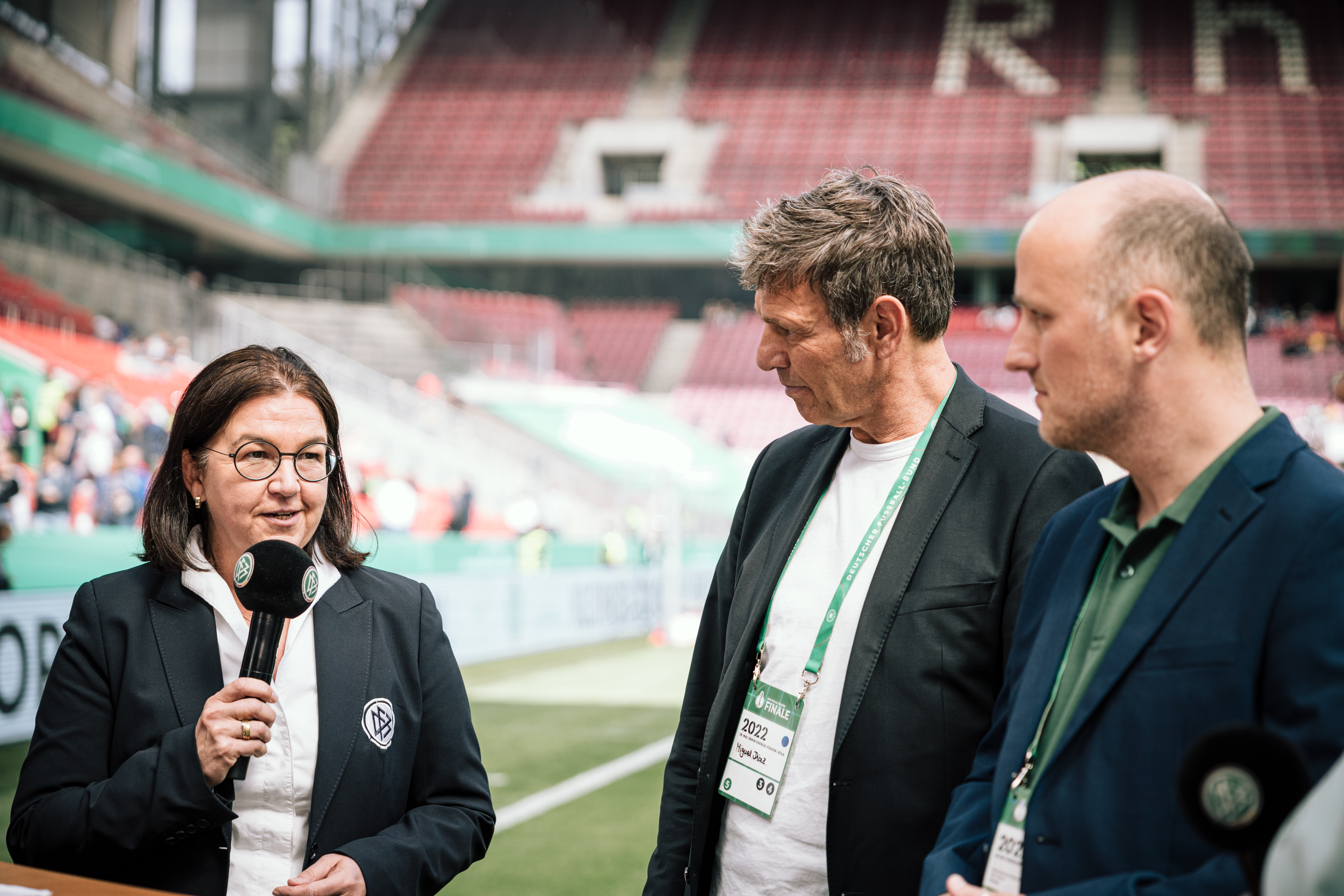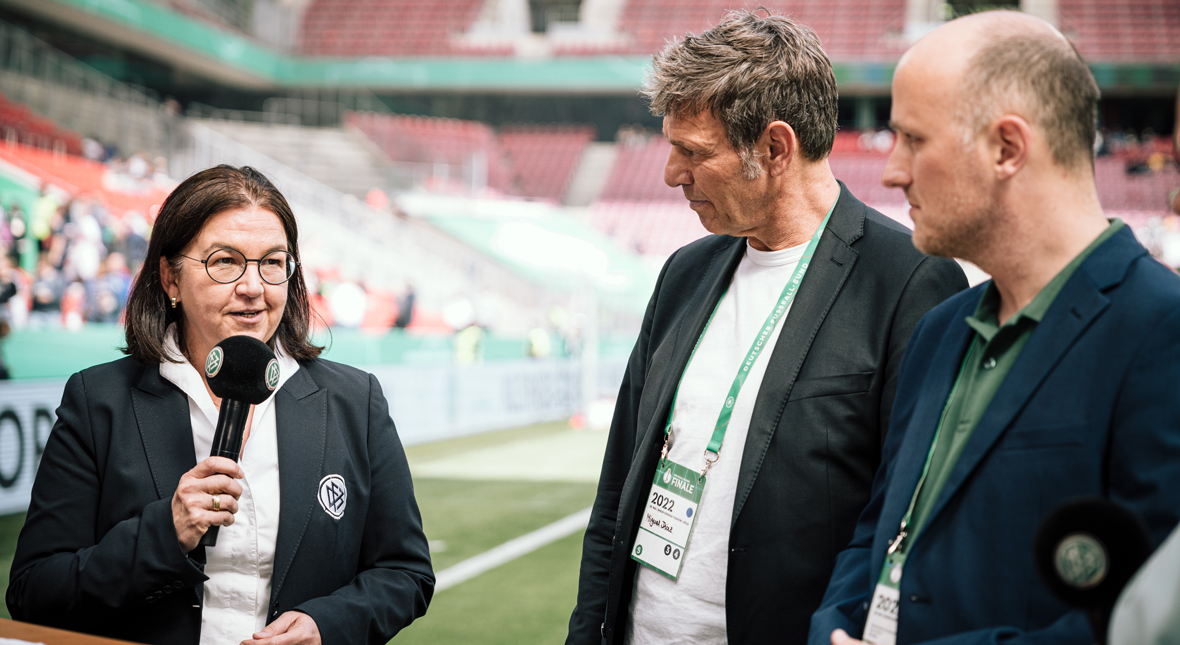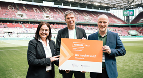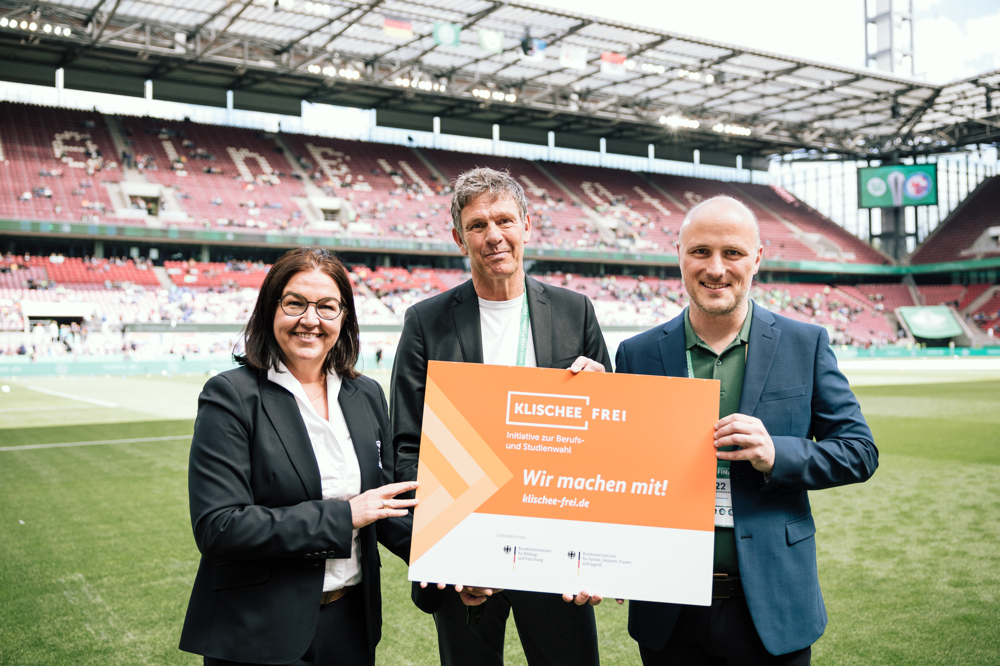 Beim Pokal-Endspiel der Frauen im Kölner RheinEnergieSTADION ist der Deutsche Fußball-Bund (DFB) der Initiative Klischeefrei beigetreten. Mit vor Ort waren der Parlamentarische Staatssekretär im Bundesministerium für Familie, Senioren, Frauen und Jugend, Sven Lehmann, DFB-Generalsekretärin Heike Ullrich sowie Miguel Diaz, Leiter der Servicestelle der Initiative Klischeefrei.