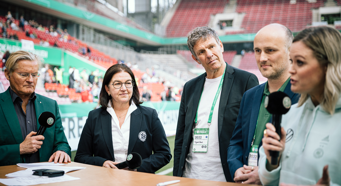 Sven Lehmann, Parlamentarischer Staatssekretär im Bundesfamilienministerium, würdigte vor Ort den Fußball als eine Sportart von gesellschaftlicher Bedeutung: „Noch immer haben Frauen im Fußball mit vielen Vorurteilen zu kämpfen – egal ob Spielerin, Trainerin oder Schiedsrichterin. Zeigen wir heute gemeinsam Rollenklischees die rote Karte und stärken den Mädchen- und Frauenfußball. Wir freuen uns über den Beitritt des DFB zur Initiative Klischeefrei. Es ist eine Chance, interne Strukturen des Sports, aber auch traditionelle, gesellschaftliche Zuschreibungen zu verändern.“