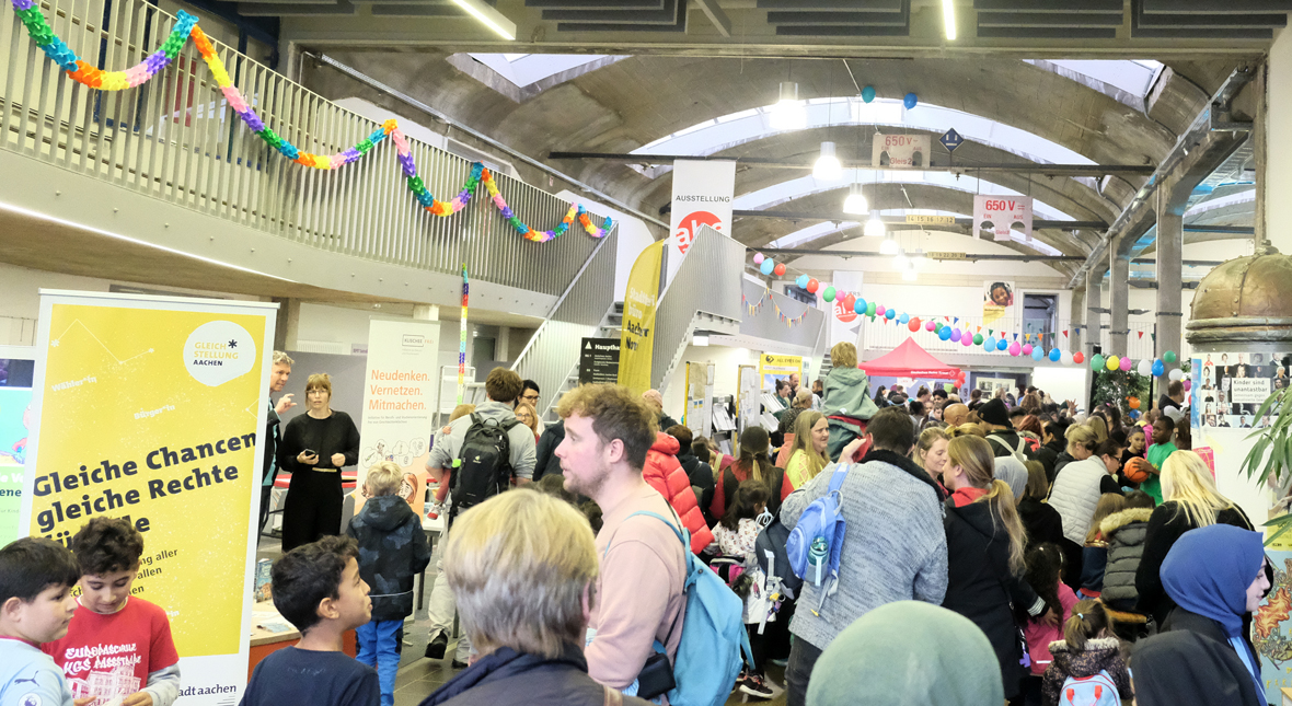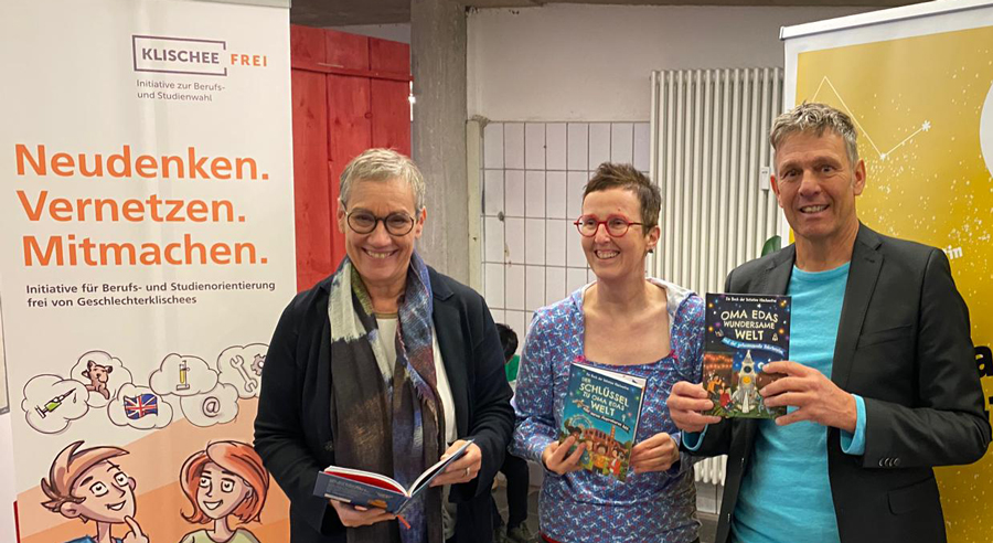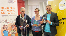 Vor Ort am Stand der Initiative Klischeefrei waren die Oberbürgermeisterin der Stadt Aachen, Sybille Keupen, Stefanie Müller vom Gleichstellungsbüro der Stadt Aachen sowie Miguel Diaz, Leiter der Initiative Klischeefrei.