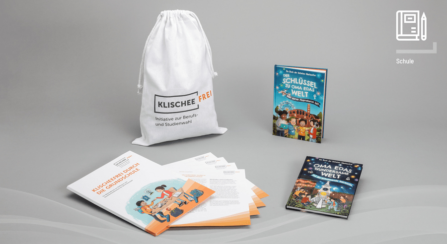Zum Methodenset „Klischeefrei durch die Grundschule“ gehören die beiden Lesebücher „Der Schlüssel zu Oma Edas Welt oder warum Ausprobieren hilft“ für Leseanfängerinnen und -anfänger und „Oma Edas wundersame Welt und der geheimnisvolle Raketenplan“ für fortgeschrittene Leserinnen und Leser.