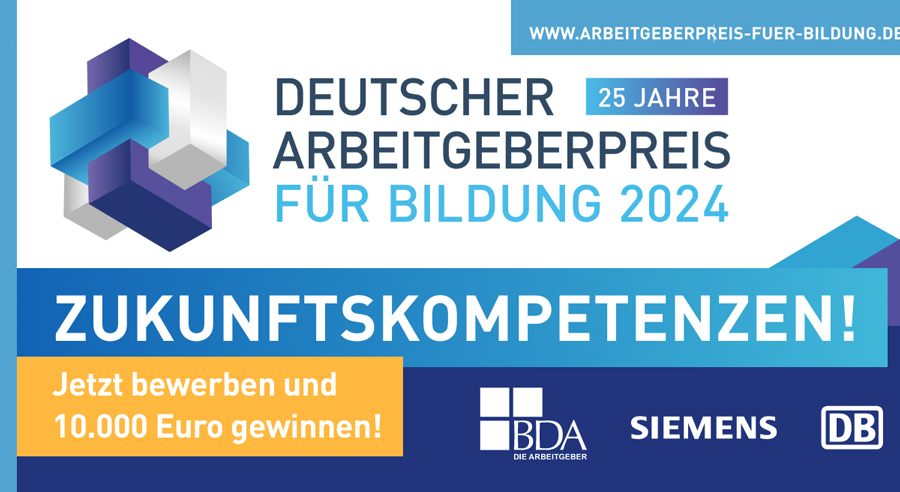 Die Bewerbungsphase für den Arbeitgeberpreis Bildung 2025 ist eröffnet! Der Preis steht in diesem Jahr unter dem Motto „Zusammenhalt stärken – Demokratie fördern“. Bewerbungsschluss ist der 20. August 2025.