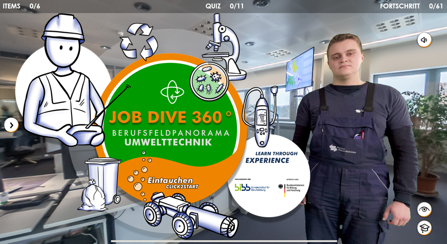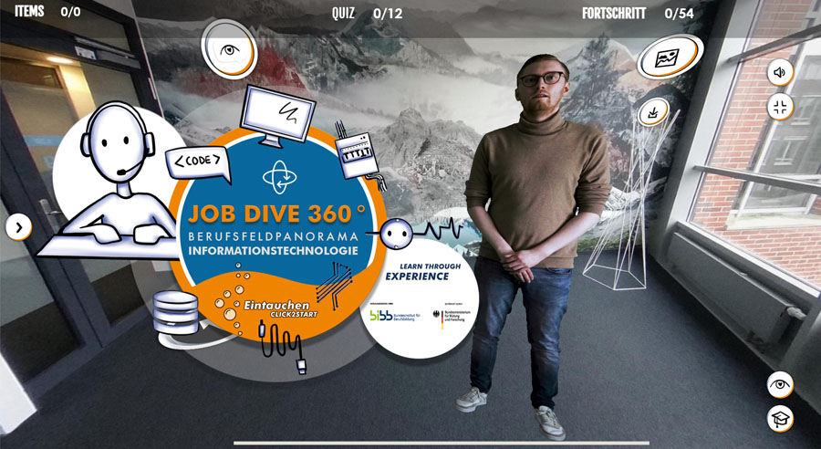 Das „Job Dive 360°“-Berufsfeldpanorama „Kälte-, Wärme- & Klimatechnik“ macht die Vielfalt dieser Zukunftsberufe anschaulich. Jugendliche tauchen interaktiv und hautnah in diese Ausbildungswelt ein: mit Videos, Audios, Interviews und Fotostrecken, die zeigen, wie Handwerk und Hightech zusammenwirken.