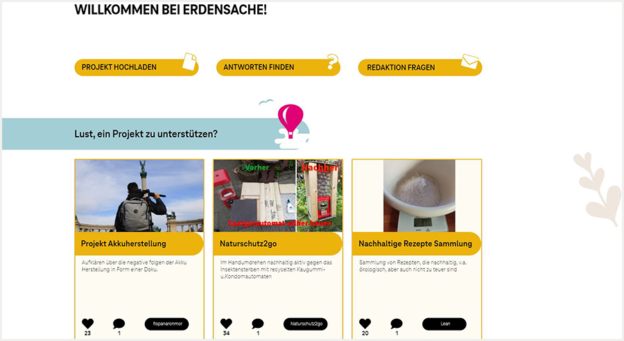 Erdensache ist eine neue Plattform der „Deutsche Telekom Stiftung“ für Jugendliche zwischen 13 und 17 Jahren, die aktiv für eine nachhaltigere Welt eintreten wollen. Dafür können sie sich hier vernetzen, Projekte erstellen, finden und bei ihnen mitmachen.