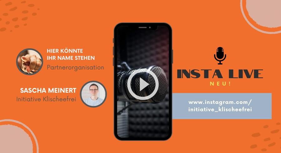 Partnerorganisationen der Initiative Klischeefrei können ab sofort für eine Frage- oder Vorstellungsrunde mit der Servicestelle der Initiative auf dem Account initiative_klischeefrei bis zu 30 Minuten live zu gehen.