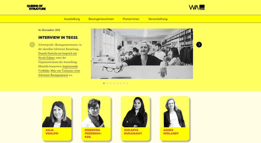 Die Ausstellung Queens of Structure zeigt zwölf Bauingenieurinnen, die mit ihren Projekten die weitgefächerten Tätigkeits- und Themenfelder des Bauingenieurwesens repräsentieren und mit ihren Positionen die Vielfalt der Herausforderungen und individuellen Herangehensweisen darin sichtbar machen.