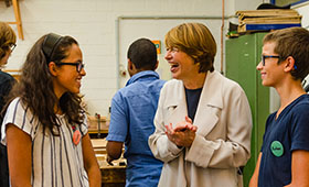 Abschließend lud das BZE-Team Elke Büdenbender zu einer Gesprächsrunde ein. Dort traf sie Jugendliche zum Gedankenaustausch über ihre beruflichen Pläne. Ihr Fazit: „Einrichtungen zur Berufsorientierung, wie das BZE, bieten neben ihrer hohen Qualität, Mädchen und Jungen aus allen Schulformen eine enorme Chance sich auszuprobieren.“