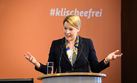 Bundesjugendministerin Franziska Giffey hob in ihrem Grußwort hervor, dass Jugendliche beruflich das tun sollten, was ihnen Spaß macht. Denn nur darin würden sie wirklich gut werden. Es bräuchte mehr Vorbilder in der Öffentlichkeit und in den Medien: „Wann kommt die erste Traumschiff-Kapitänin?“ Weiblich konnotierte Berufe müssten zudem besser bezahlt werden. Dies würde sie für Männer attraktiver machen, wie die vergütete Erzieherausbildung in Baden-Württemberg gezeigt habe. Erfreulicherweise absolvierten dennoch immer mehr Männer eine Ausbildung oder ein Studium in einem sozialen Beruf.