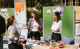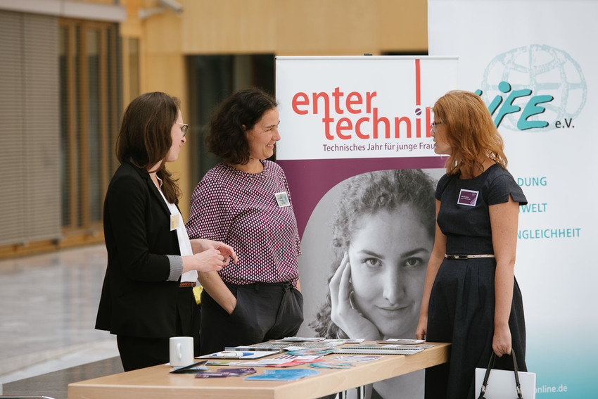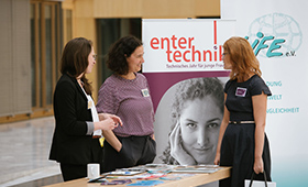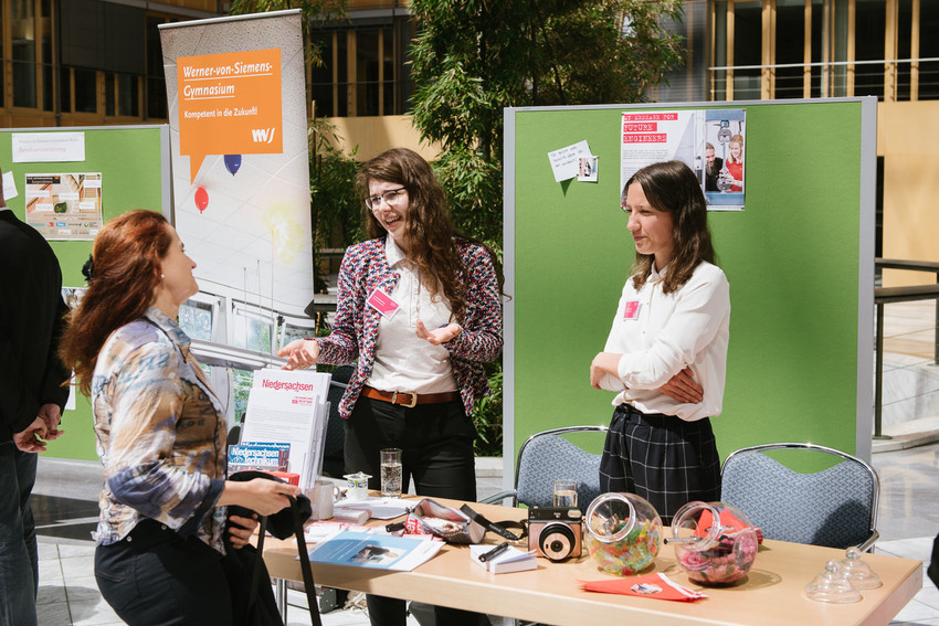 Vertreten war beispielsweise das Werner-von-Siemens-Gymnasium aus Berlin, aber auch das Fraunhofer-Institut für Intelligente Analyse- und Informationssysteme oder die Bundesagentur für Arbeit. Ergänzt wurde der Klischeefrei-Markt von den Girls'Day- und Boys'Day-Wanderausstellungen „Neues ausprobieren!“ und „Für deine Talente!“.