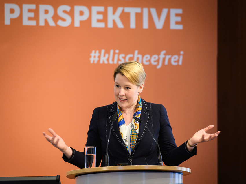 Der Leiter der Servicestelle der Initiative Klischeefrei, Miguel Diaz, und Bundesjugendministerin Franziska Giffey