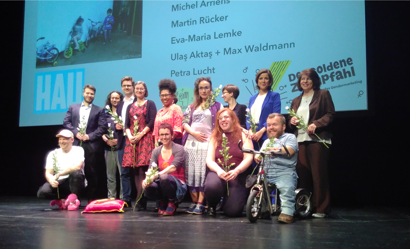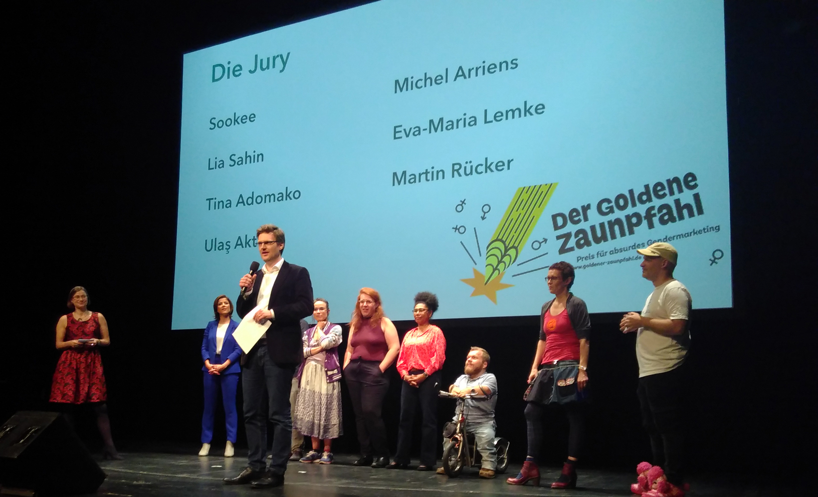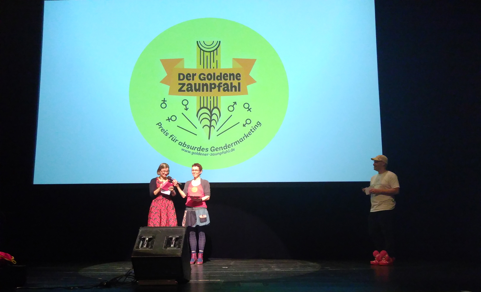 Die Initiatorinnen und Initiatoren des „Goldenen Zaunpfahls“ beschränkten sich an diesem Abend aber nicht nur auf schlechte Beispiele, sondern vergaben erstmals das freispiel-Abzeichen an einen jungen Barfußschuh-Hersteller. Das freispiel-Abzeichen richtet sich an Unternehmen, die sich dem Gendermarketing-Trend widersetzen und in ihren Kommunikations- und Verkaufsstrategien explizit dafür eintreten, dass Kinder und Erwachsene Wahlfreiheit haben, anstatt in eine normierende rosa beziehungsweise hellblaue Schublade gesteckt zu werden.