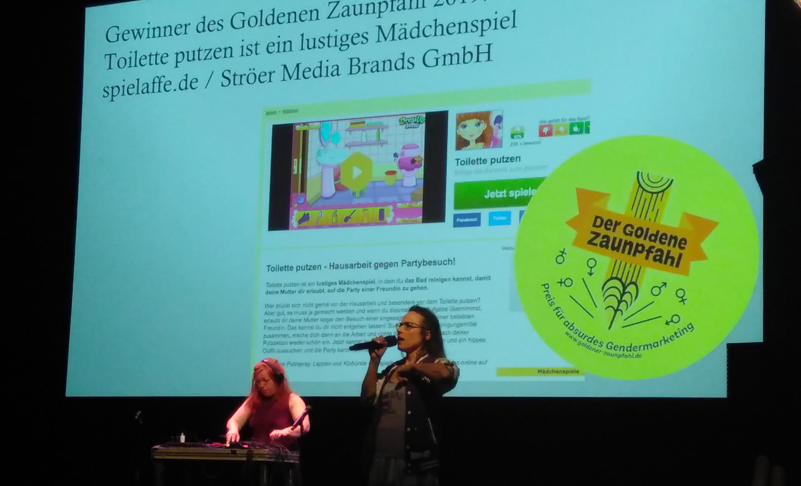 Der Goldene Zaunpfahl 2019 geht an das Onlinegame „Toilette putzen – Hausarbeit gegen Partybesuch!“ des von Ströer Media Brands betriebenen Portals „spielaffe.de“. Damit ist das als „Mädchenspiel“ definierte Game „Gewinner“ des Negativpreises für absurdes Gendermarketing.