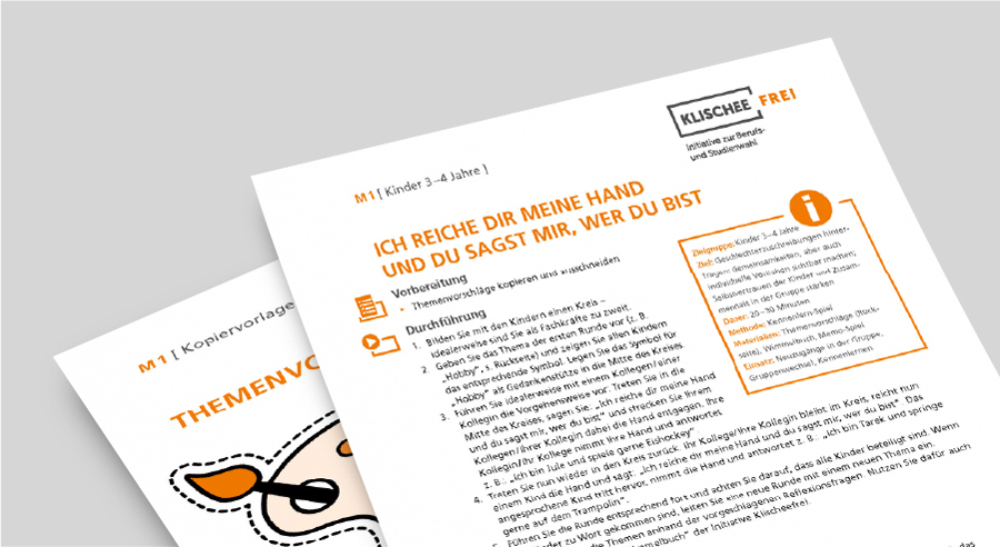 Geschlechterklischees schreiben Personen aufgrund ihrer Geschlechtszugehörigkeit bestimmte Verhaltensweisen und Eigenschaften zu. Diese Zuschreibungen sind gesellschaftlich fest verankert und beeinflussen auch die (Berufs-)Vorstellungen von Kindern. Das kritische Hinterfragen dieser Klischees sowie das Herausstellen individueller Vorlieben ist auch schon für ganz junge Menschen wichtig. So werden das Selbstvertrauen der Kinder und der Zusammenhalt in der Gruppe gestärkt.