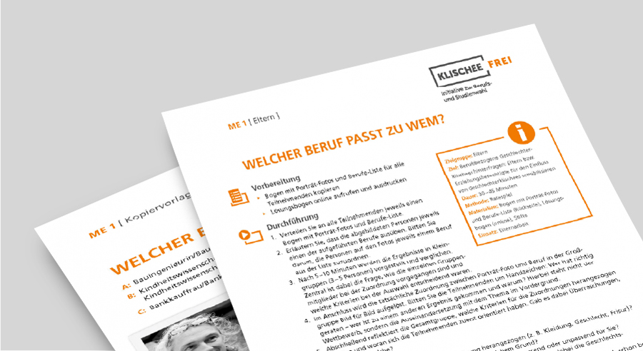 - Ziel: Berufsbezogene Geschlechterklischees hinterfragen; Eltern bzw. Erziehungsberechtigte für den Einfluss von Geschlechterklischees sensibilisieren