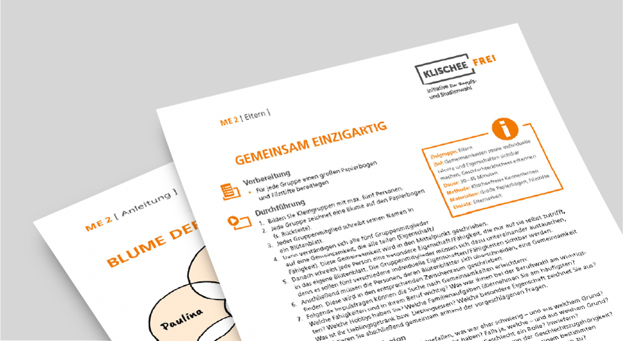 Mit unseren Mitmenschen teilen wir viele Gemeinsamkeiten, seien es Hobbys, das Lieblingsessen oder auch der Wohnort. Es gibt aber auch viele Eigenschaften, Fähigkeiten oder Interessen, die uns ganz persönlich auszeichnen. Wo gibt es Gemeinsamkeiten und wo gibt es Unterschiede? Haben diese etwas mit dem Geschlecht zu tun oder eben gerade nicht? Finden Sie es heraus und nutzen Sie diese Methode, um sich in der Gruppe besser kennenzulernen und darüber hinaus das Thema Geschlechterklischees gemeinsam mit Eltern und Erziehungsberechtigten ganz praktisch anzugehen.