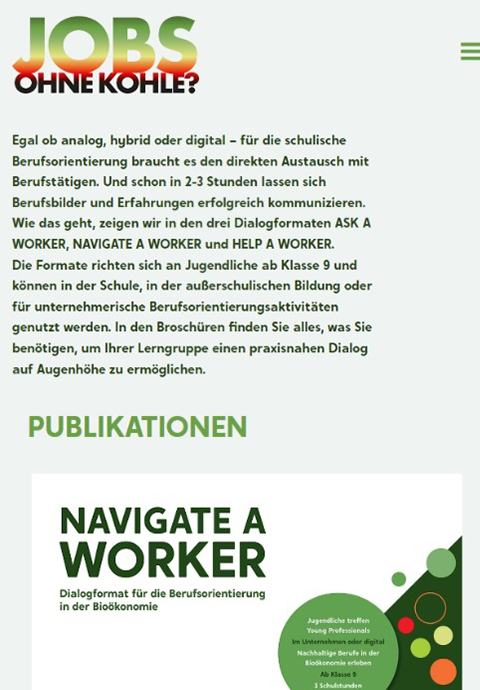 Egal ob analog, hybrid oder digital – für die schulische Berufsorientierung braucht es den direkten Austausch mit Berufstätigen. Schon in zwei bis drei Stunden lassen sich Berufsbilder und Erfahrungen erfolgreich kommunizieren. Wie das geht, zeigt der Wissenschaftsladen Bonn e.V. mit seinen drei Dialogformaten für die Berufsorientierung in der Bioökonomie: ASK A WORKER, NAVIGATE A WORKER und HELP A WORKER.